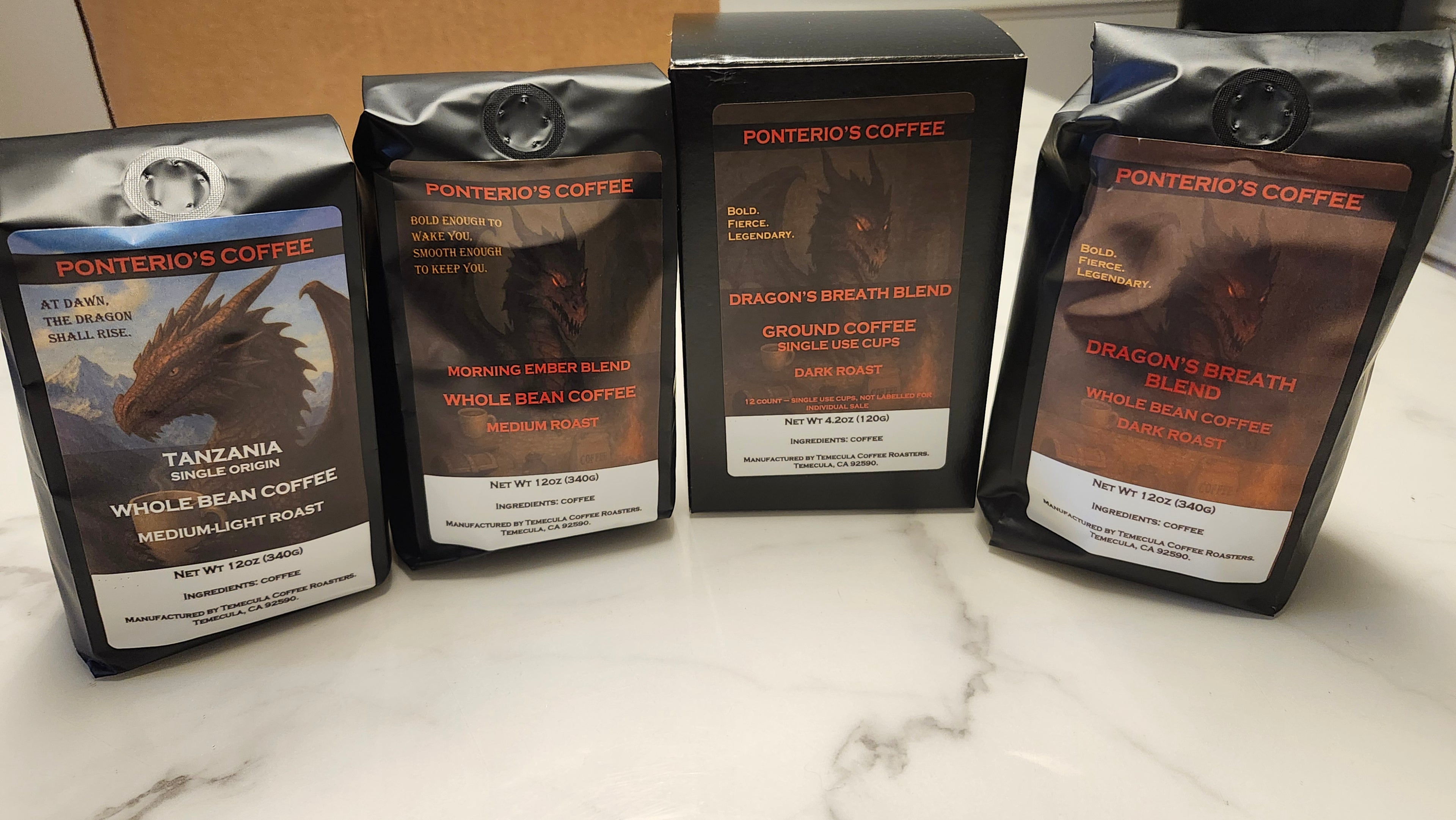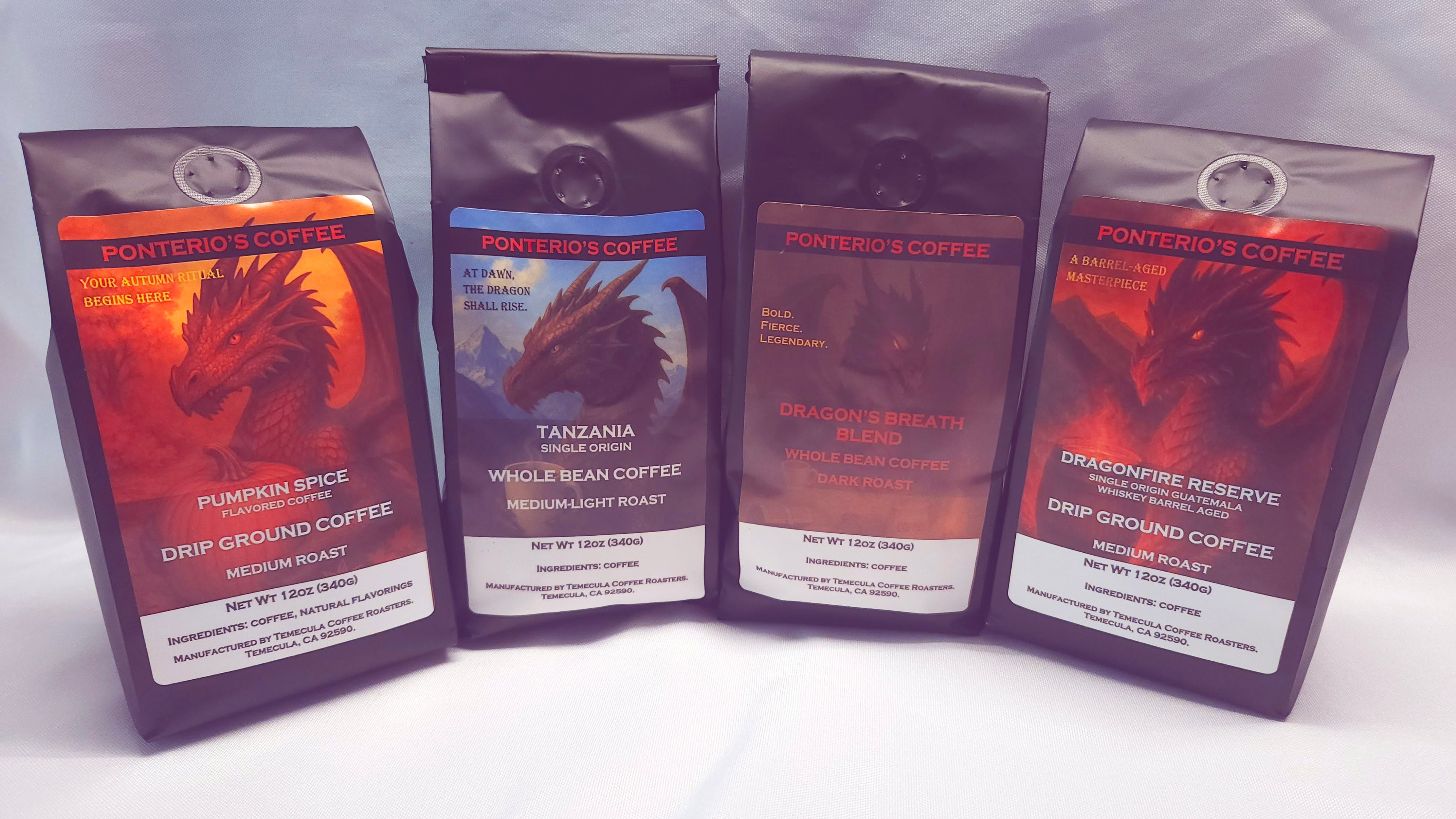At Ponterio's Coffee, we believe every cup should ignite your spirit like a dragon’s flame. That’s why our coffee is roasted fresh to order, delivering bold flavor and unrivaled freshness with every sip. Inspired by the strength and legend of dragons, our roasts are crafted to fuel your fire and awaken the power within. This isn’t just coffee—it’s energy forged in fire.